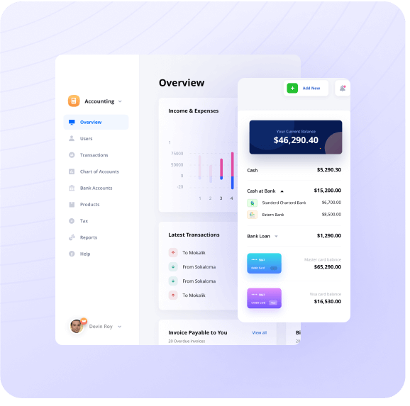 customers, vendors, sales, expenses, bank accounts, and various reports. Generate live and detailed